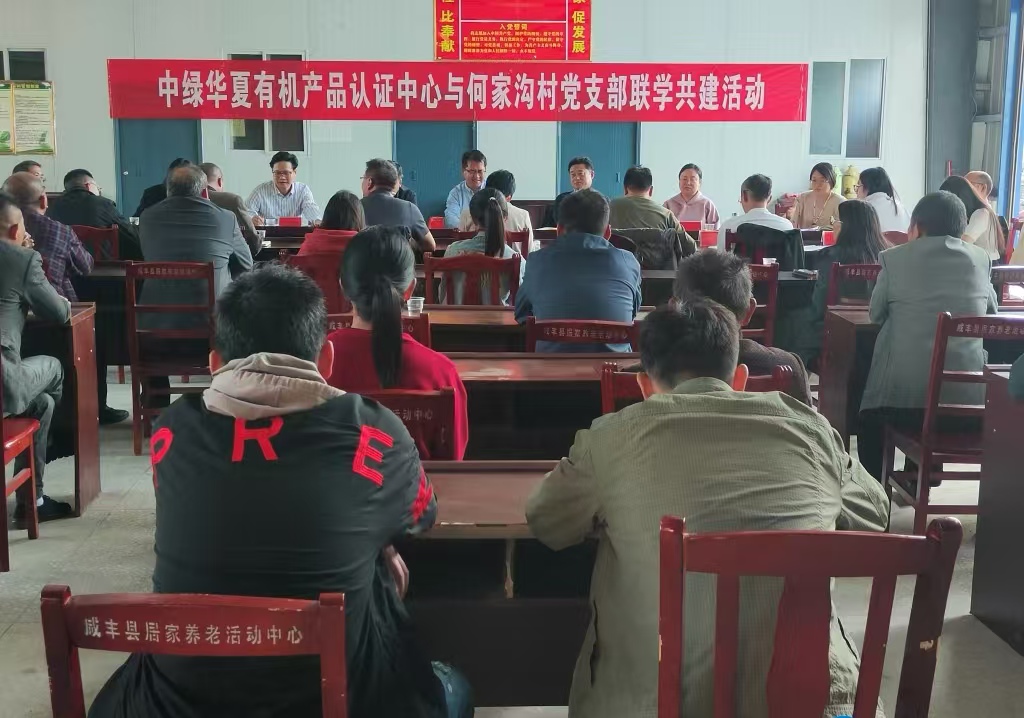 調研組一行參觀了何家溝村容村貌及產業基地,與村兩委成員、村種植大戶、村民代表等圍繞何家溝村綠色產業發展、鄉村全面振興等座談交流。大家一致認為,自2021年與中國綠色食品發展中心有機中心黨支部開展結對幫扶以來,何家溝村在支部建設、村容村貌、思想觀念、產業發展等方面發生了巨大變化,結對幫扶成效顯現。聯學共建活動中,兩個支部黨員共同學習了黨的二十屆三中全會精神,并就學習運用“千萬工程”經驗,加強支部建設、推動黨建與產業融合發展等進行了互動交流。有機中心黨支部書記夏兆剛以增加綠色優質農產品供給、助力鄉村產業振興為主題講授了黨課。活動期間,調研組成員還分組進村入戶,調研村莊環境整治、產業發展等工作,并對何家溝村申報的茶葉、野竹筍等有機產品開展了現場檢查和技術指導。