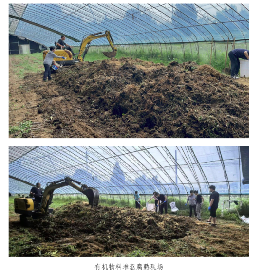 此次利用中國農業科學院農業資源與農業區劃研究所有機物料腐熟技術,采用條剁式堆漚,利用牛糞、小麥秸稈以及就地取材的農場尾菜等綠色廢棄物,嚴格控制溫度、水分、通風等重要指標,以使發酵充分,形成了牛糞、秸稈、尾菜、雜草等有機物料腐熟還田的綠色生產技術。據了解,設施蔬菜大棚連續多年種植容易導致土壤變硬、鹽漬化、養分不均衡等問題,通過采用深翻、有機物料腐熟還田、土壤增效處理等綜合措施,進一步改善土壤團粒結構,提高土壤生物活性和土壤肥力,為設施蔬菜生態可持續種植打下良好基礎。